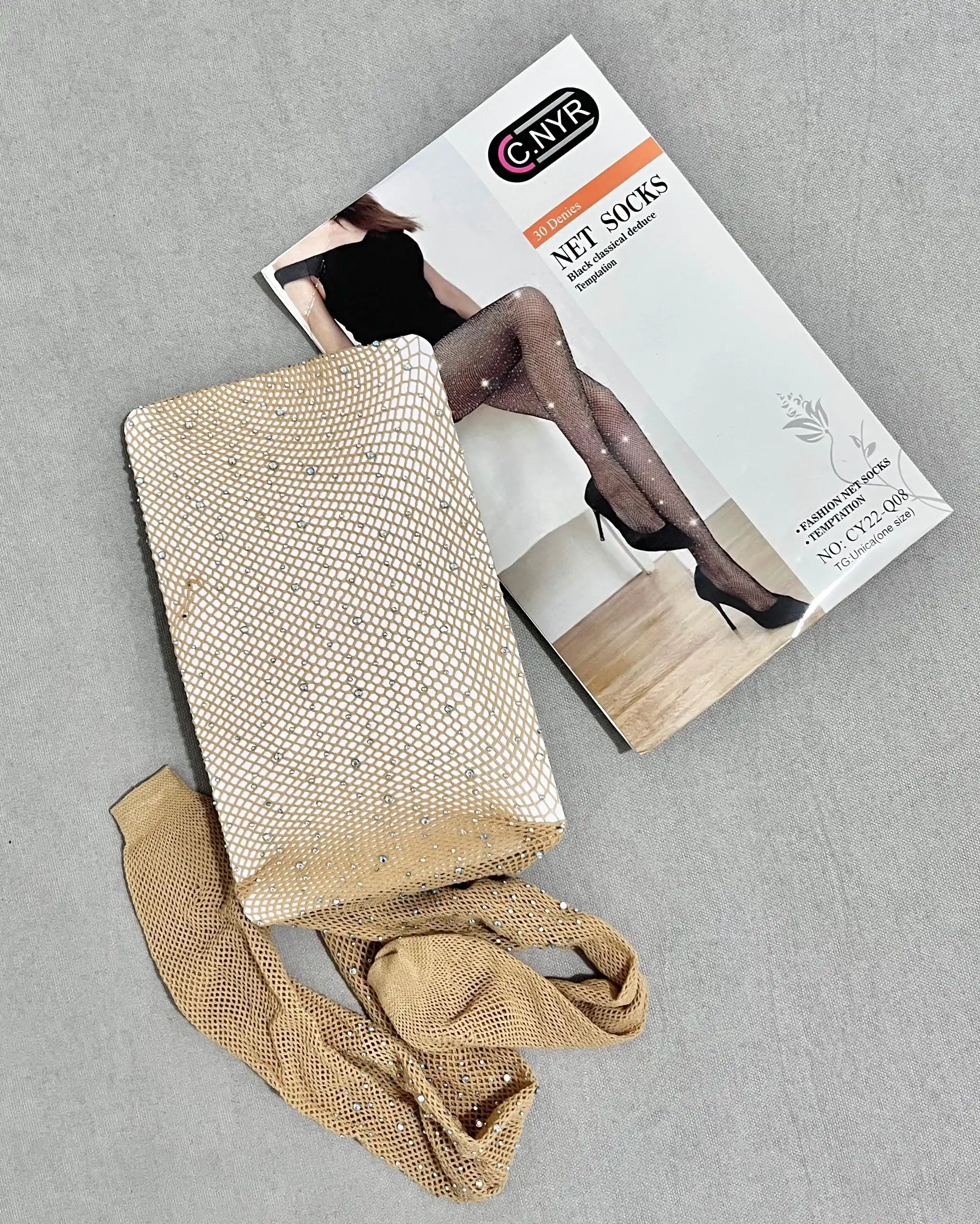 جوراب شلواری فیشنت نگین دار ریز برند C.NYR